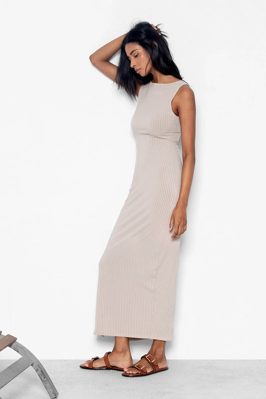 Beige Contrast Collar Dress