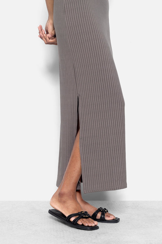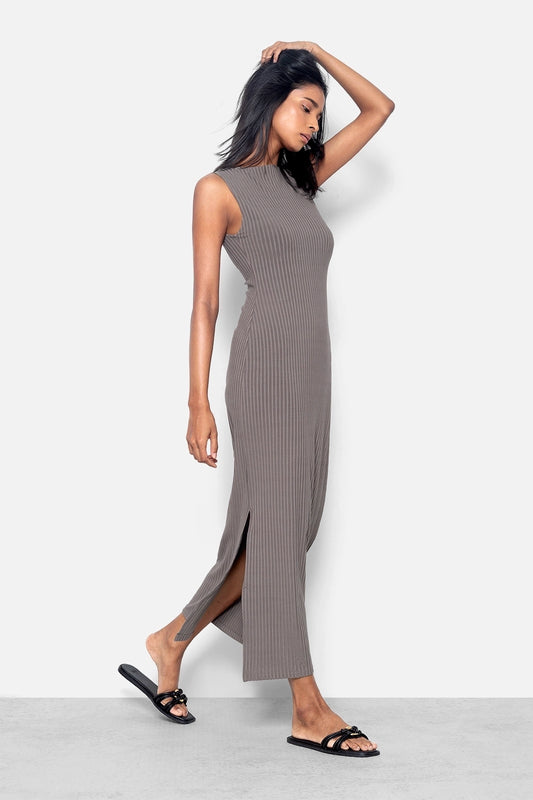 Black Satin Slit Dress