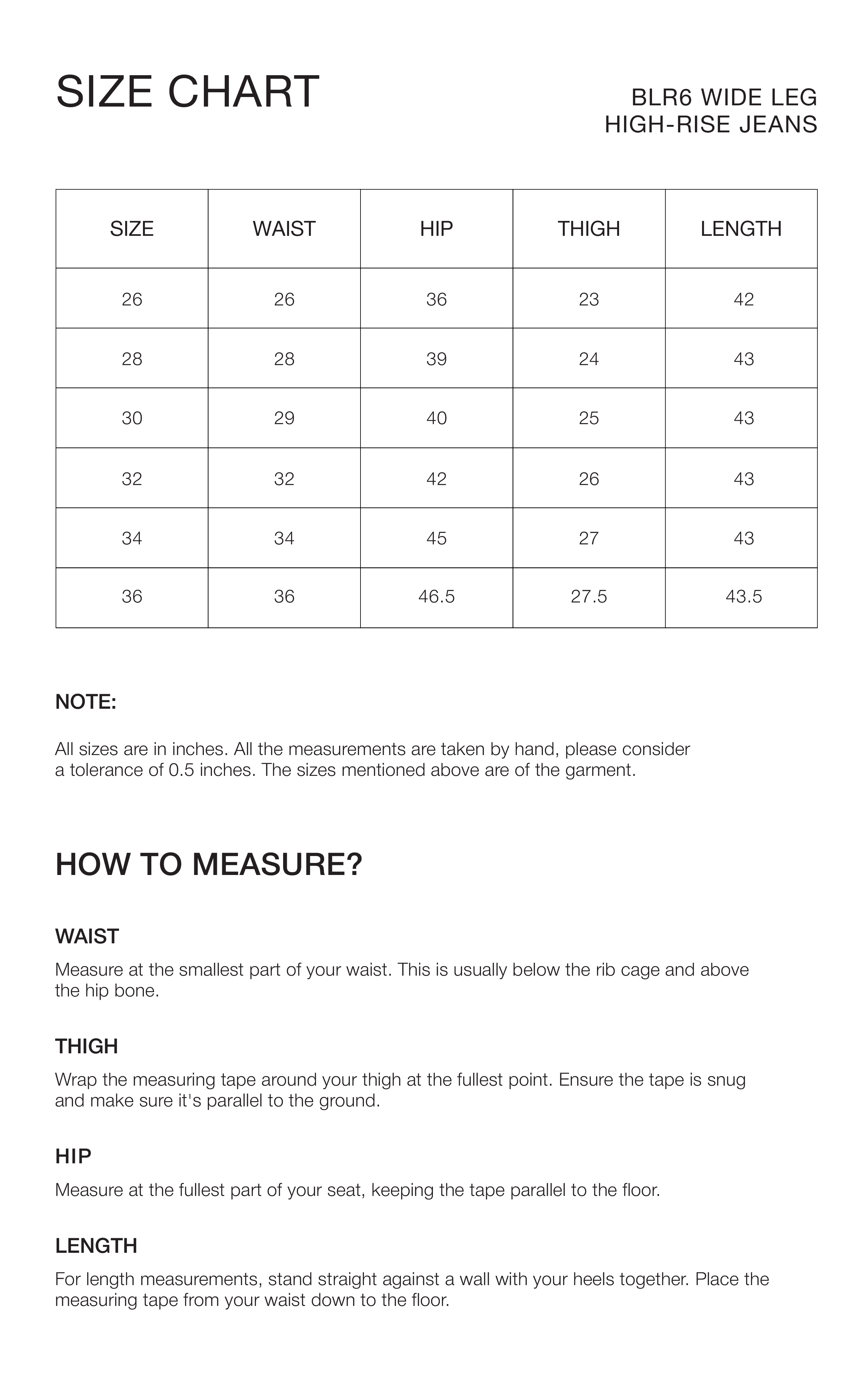 • Please note that garment measurements may vary by up to half an inch.