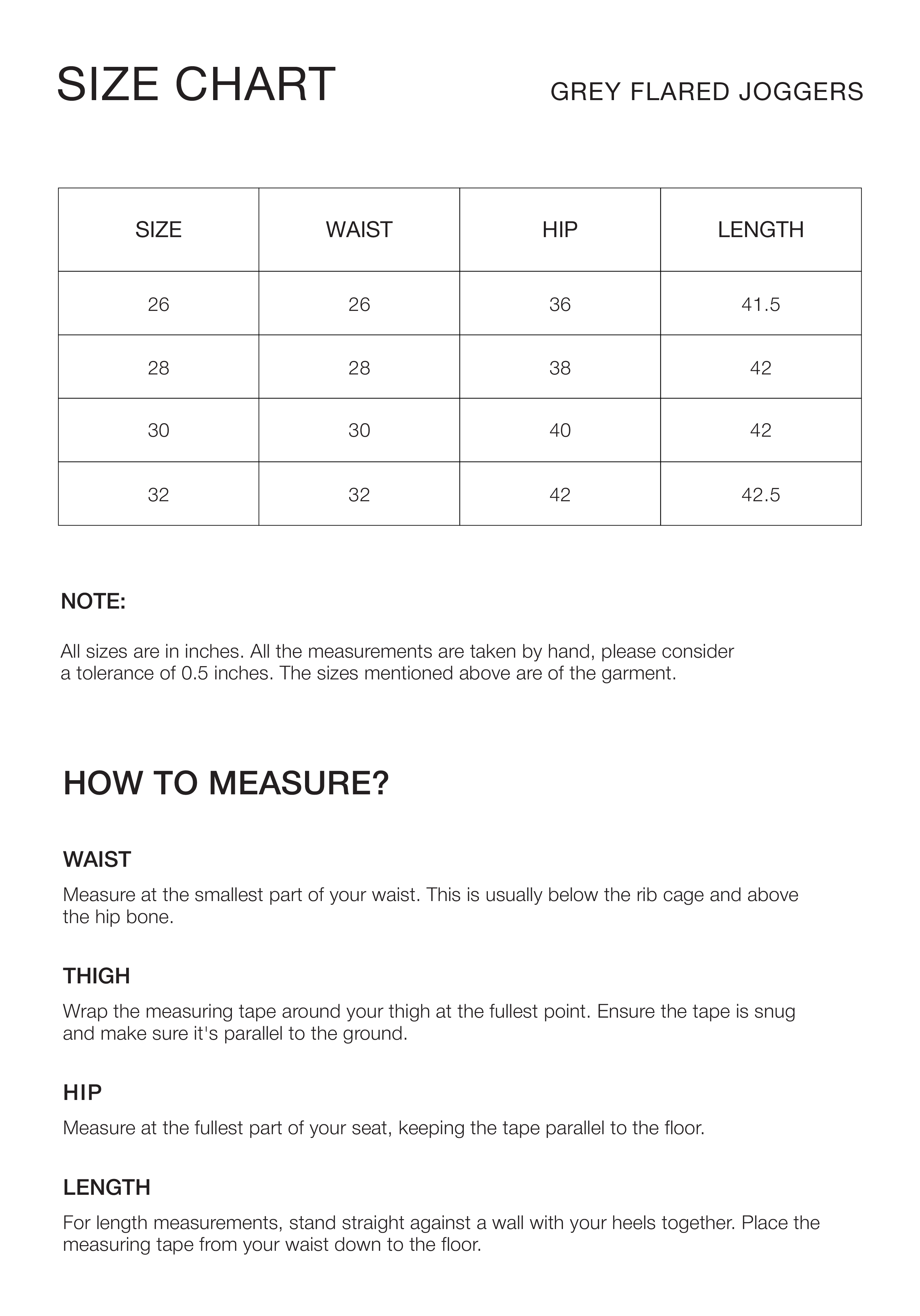 Grey flared joggers with a high-rise drawstring waist, straight-to-flared leg silhouette, and full-length cut.