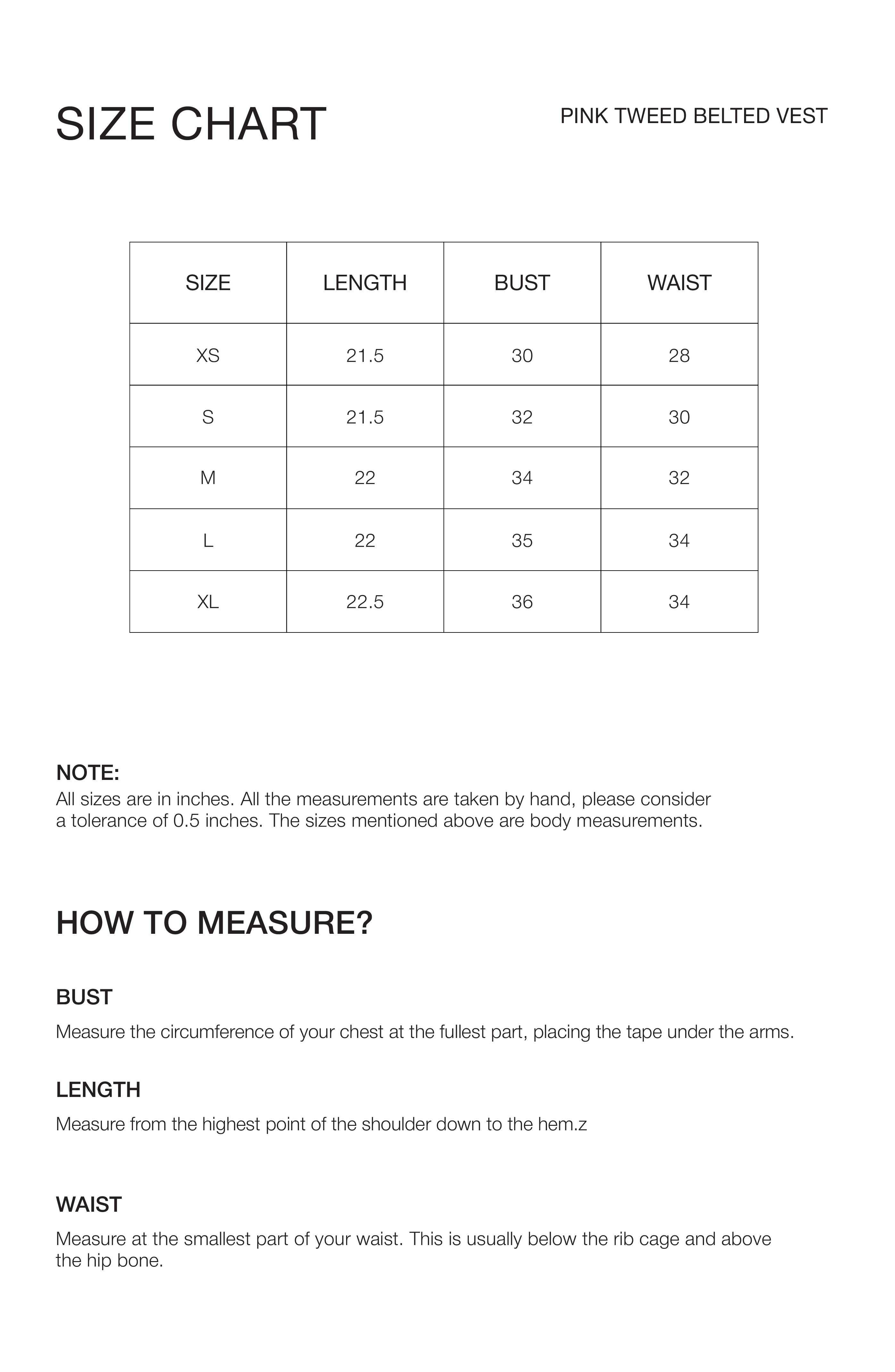 Pink tweed vest with a round neckline, flap pockets, gold-tone button front, structured waist panel, and a detachable belt.