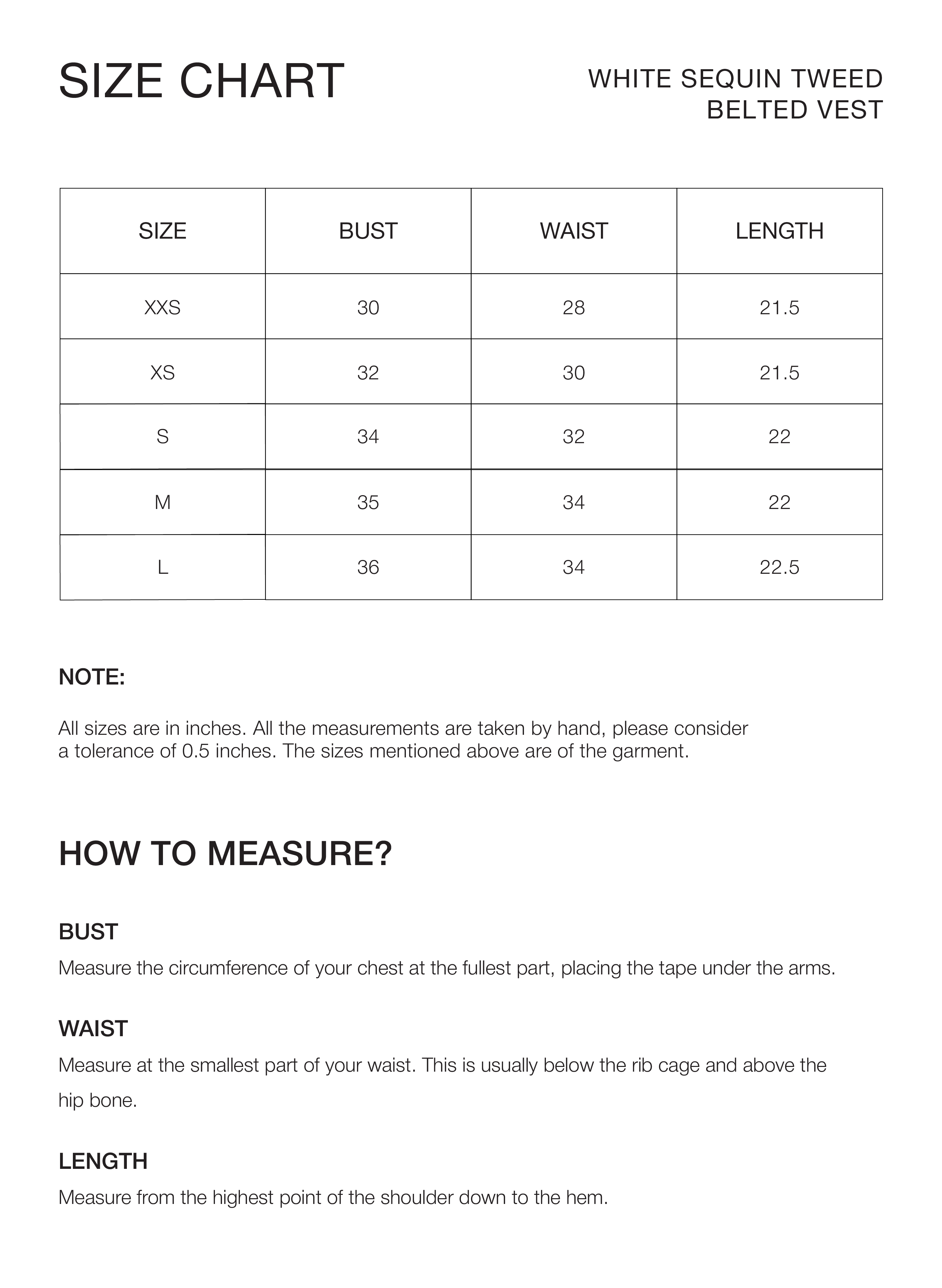 White sequin tweed vest with a round neckline, flap pockets, gold-tone button front, structured waist panel, and a detachable belt.
